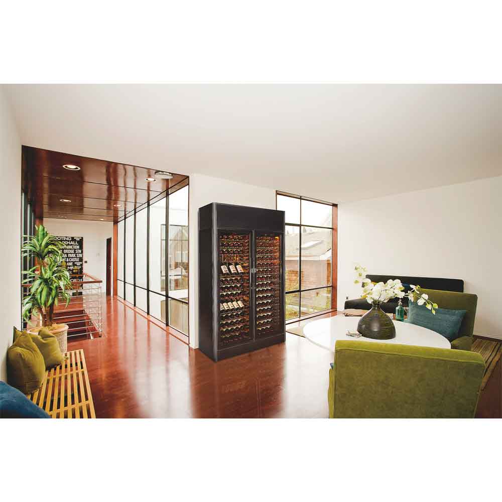 Det her er EuroCaves vinskabe til fremvisning og fremhævning af de allerstørste vine.